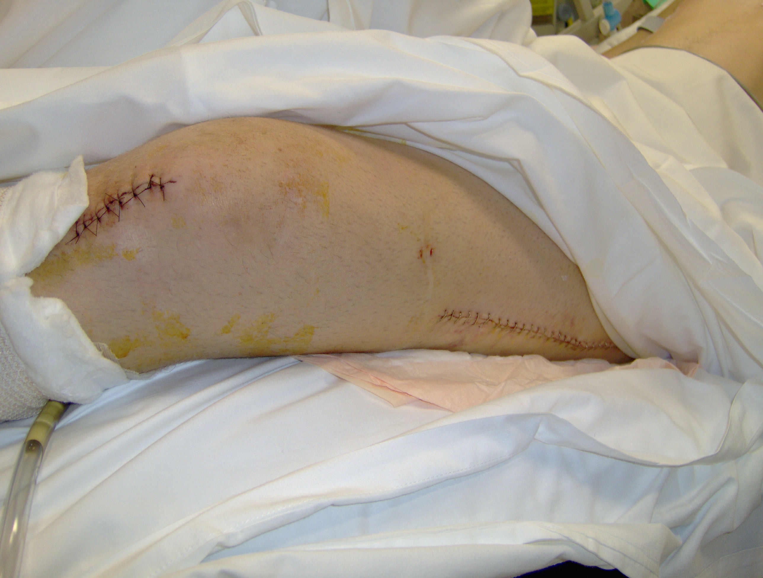 When we arrived to the ED no one was saying much and the Administrative Coordinator escorted us up to the Trauma unit. The first place they took us was to the “Family Conference room” then told us the Resident would be out to talk with us. Dad and I were scared and in shock. I kept thinking this is what is done when there is bad news. Dr. Carpenter came in and started going over all of your injuries. He was very kind and caring but he kept referring to your injuries in the past tense. I finally had to stop him to ask if you were still alive, he said yes, he didn’t realize he was presenting you in the past tense. We were able to go back and see you for just a few seconds. You were still having trouble keeping your blood pressure up. The Trauma team was still aggressively resuscitating you with – fluids, blood, and fresh frozen plasma to replenish the volume you lost with your femur and tibia/fibula fractures along with the liver laceration. The next concern was your left foot.